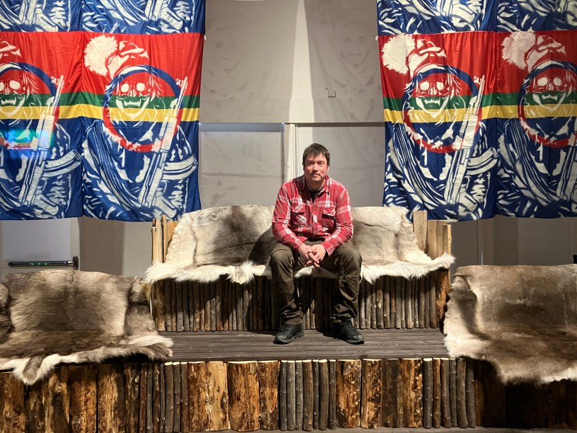 – Det här är en samisk/min egen rättssal – hur jag skulle kunna tänka mig att den skulle vara. Det har funnits ett samiskt rättssystem förut, innan det svenska och norska och finska kom in. Då hade man olika nivåer hur man dömde: andligt, socialt och materiellt, säger Anders Sunna.