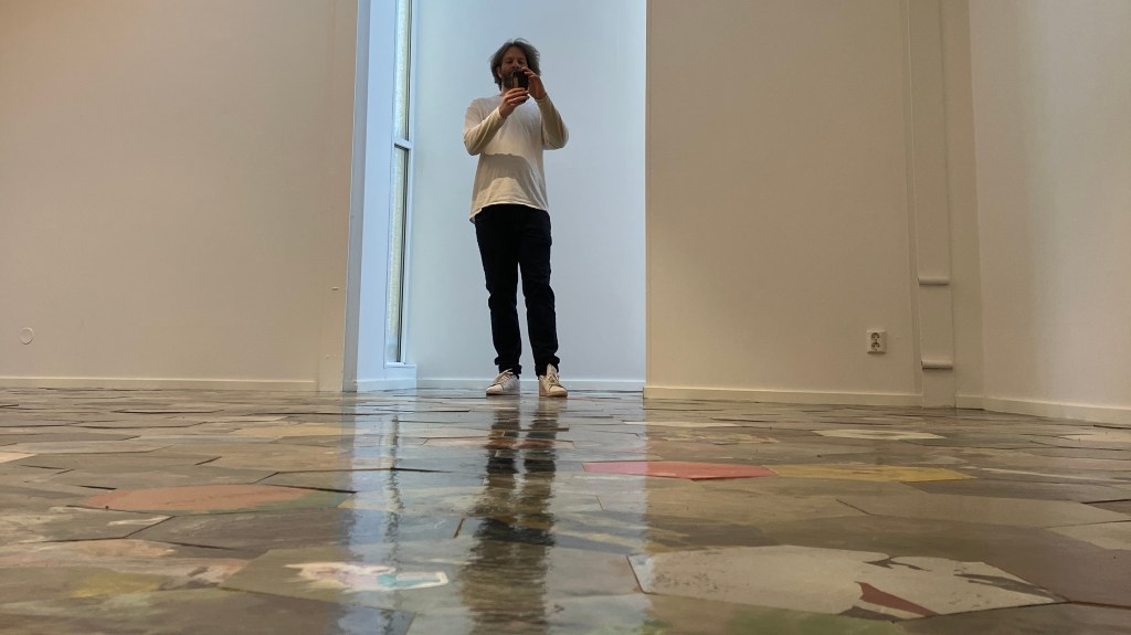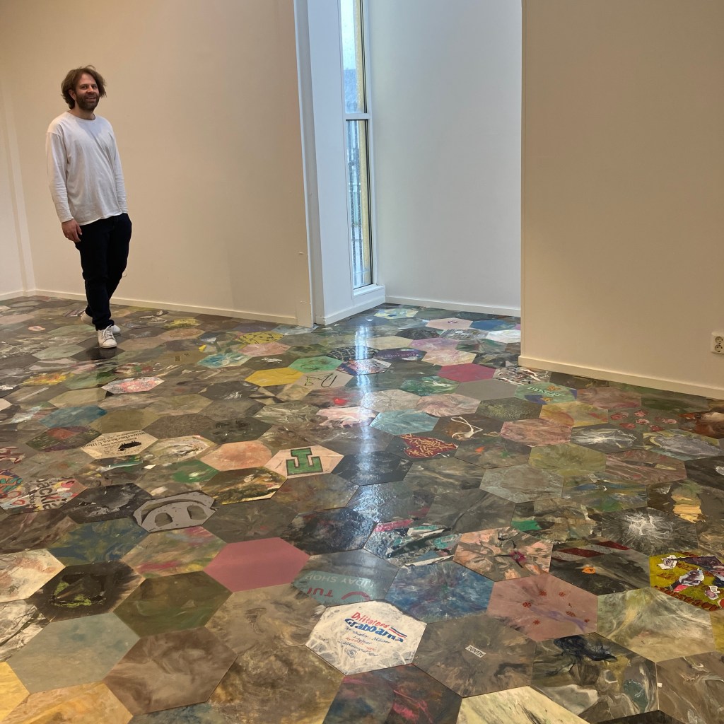 På Ebelingmuseet har Diamant skapat en 80 kvadratmeter stor ”bassäng” genom att täcka hela golvet med 1000 hexagoner. Verket har tagit 6000 timmar att göra.