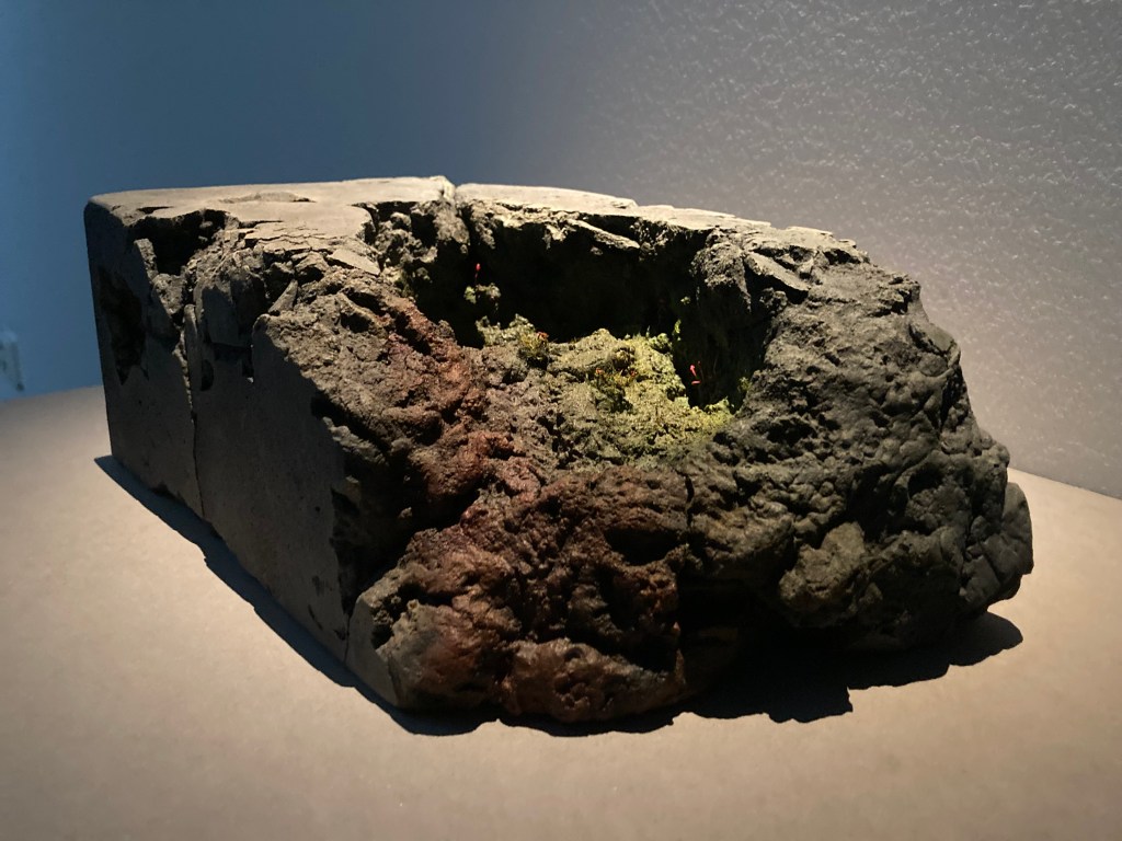 Det är storheten i det minsta i naturen som lyfts fram. I en film projicerad på ena väggen, rytmisk och effektfull som en musikvideo, blandas drönarlika åkningar över ”bergskedjor” med animerade macrotagningar av små växters märkliga delar. Det är dock en lika skicklig illusion som skulpturerna: ämnet och det porträtterade är mestadels mossor och lavar. Verket är från det pågående projektet Urban Microhabitats där Furbacken via närstudier skildrar mikrolandskap i gränslandet mellan bebyggelse och natur i flera av världens stora städer. Filmen som visas i Eskilstuna, ljudsatt i samarbete med Robin af Ekenstam, är fån New York, men Furbacken har hittills undersökt även Rom, Paris, Stockholm och Helsingfors.